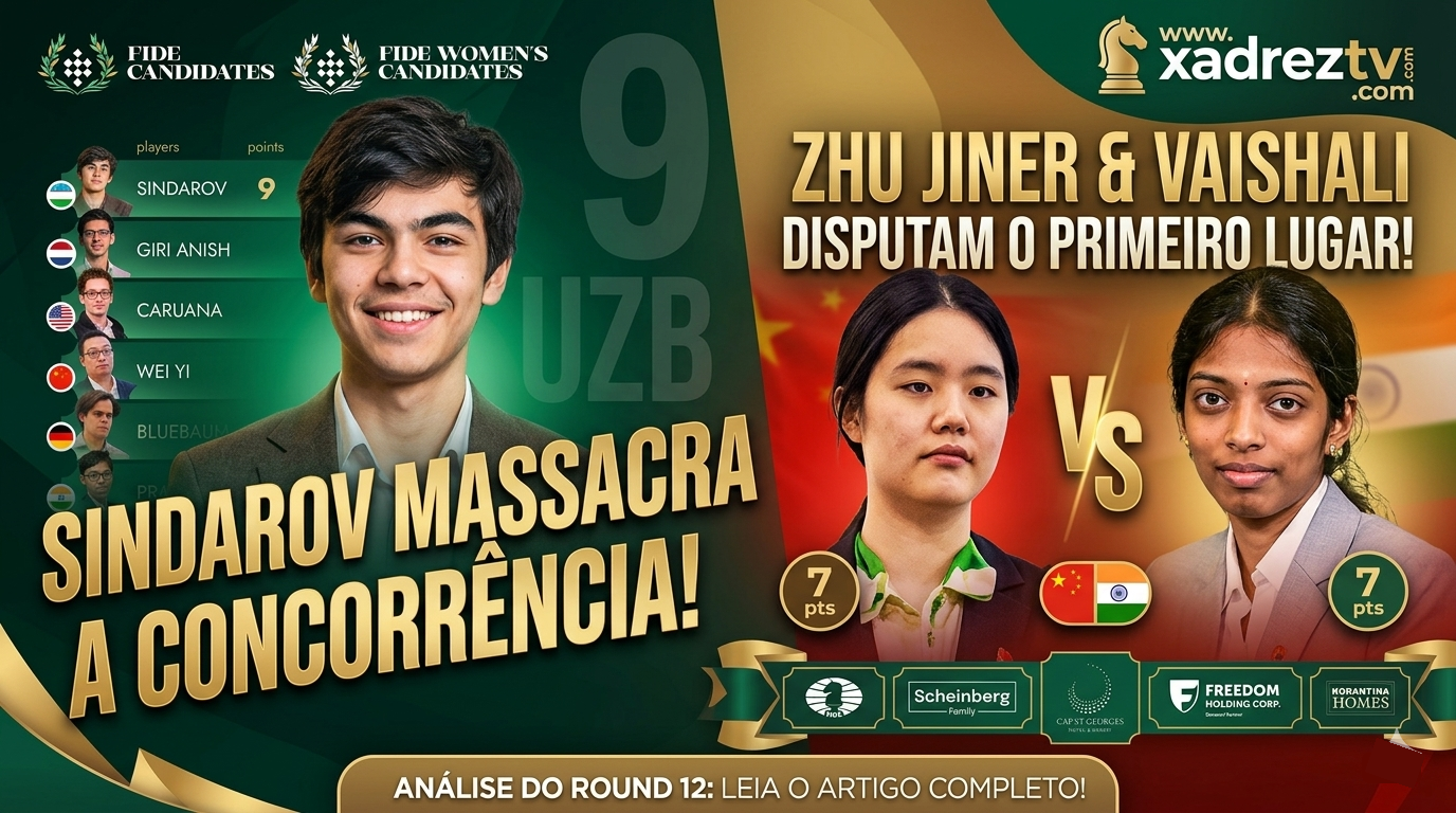 O tabuleiro pegou fogo na Round 12 do FIDE Candidates 2026! Enquanto no Aberto o prodígio Javokhir Sindarov abre uma vantagem “imoral” sobre o resto do mundo, o torneio Feminino virou um campo de batalha sangrento com reviravoltas que ninguém ousou prever.
